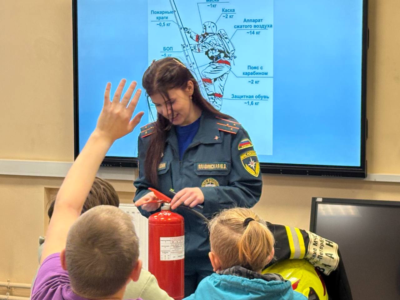 Несмотря на то, что основным направлением в организации является обучение детей правилам дорожного движения и профилактика детского дорожно-транспортного травматизма, пожарных инспекторов пригласили рассказать ребятам и о пожарной безопасности. Представители МЧС России показали обучающие видеоматериалы и рассказали об основных причинах возникновения пожаров, объяснили, как пользоваться огнетушителями, как правильно действовать во время пожарной тревоги.