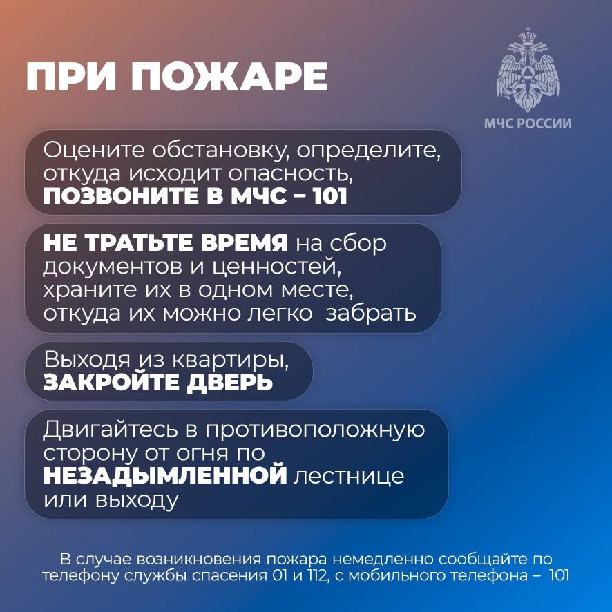 -Оказавшись в безопасности, проверьте, все ли близкие, соседи и знакомые в порядке. Если кого‑то нет, сообщите об этом пожарным.