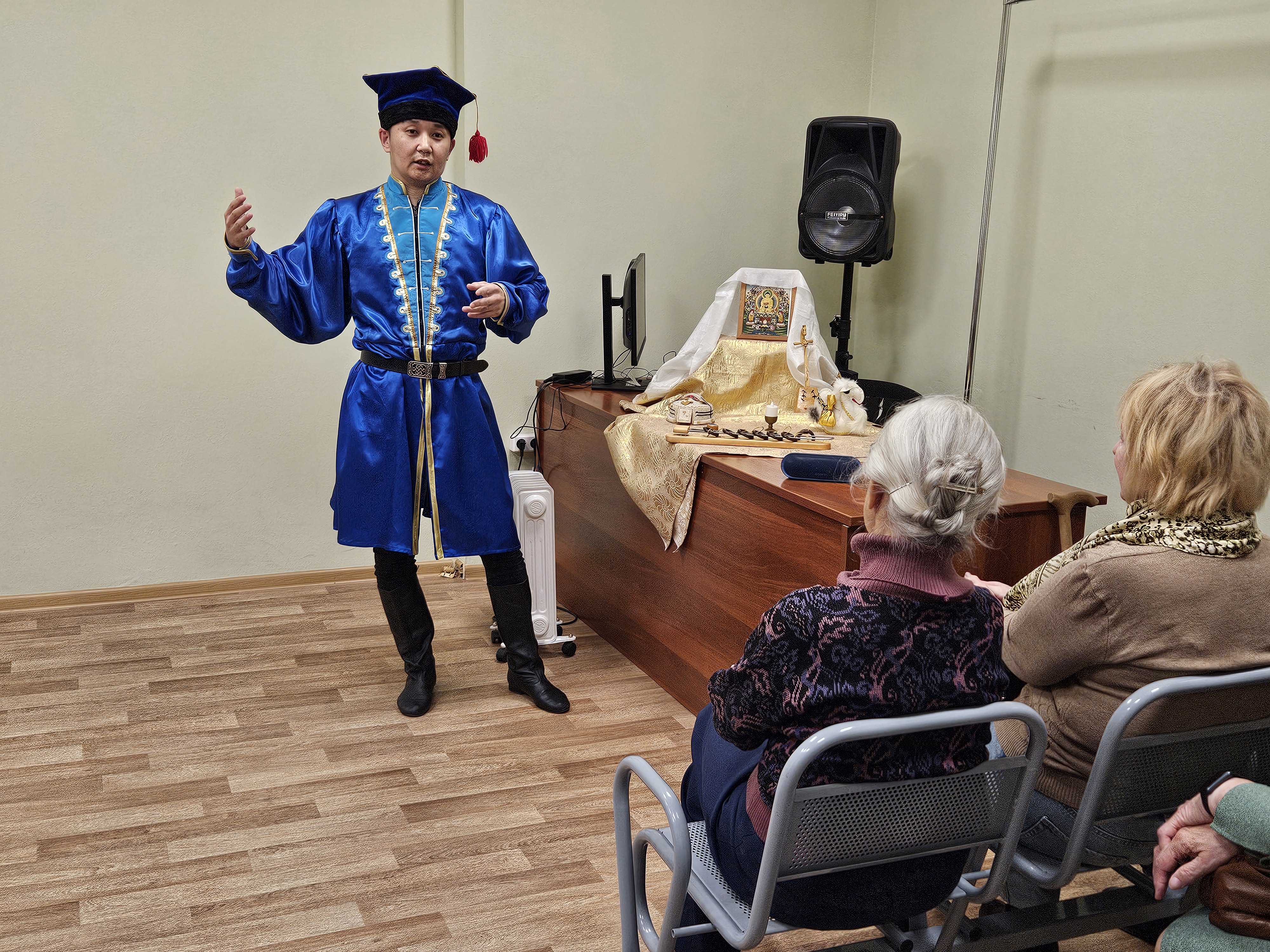 Представитель калмыцких традиций, художественный руководитель танцевального ансамбля «Байн Цаг» Дорджи Болдырев, посетил местную Администрацию МО Александровский, где показал и рассказал об особенностях традиционной культуры своего родного края.