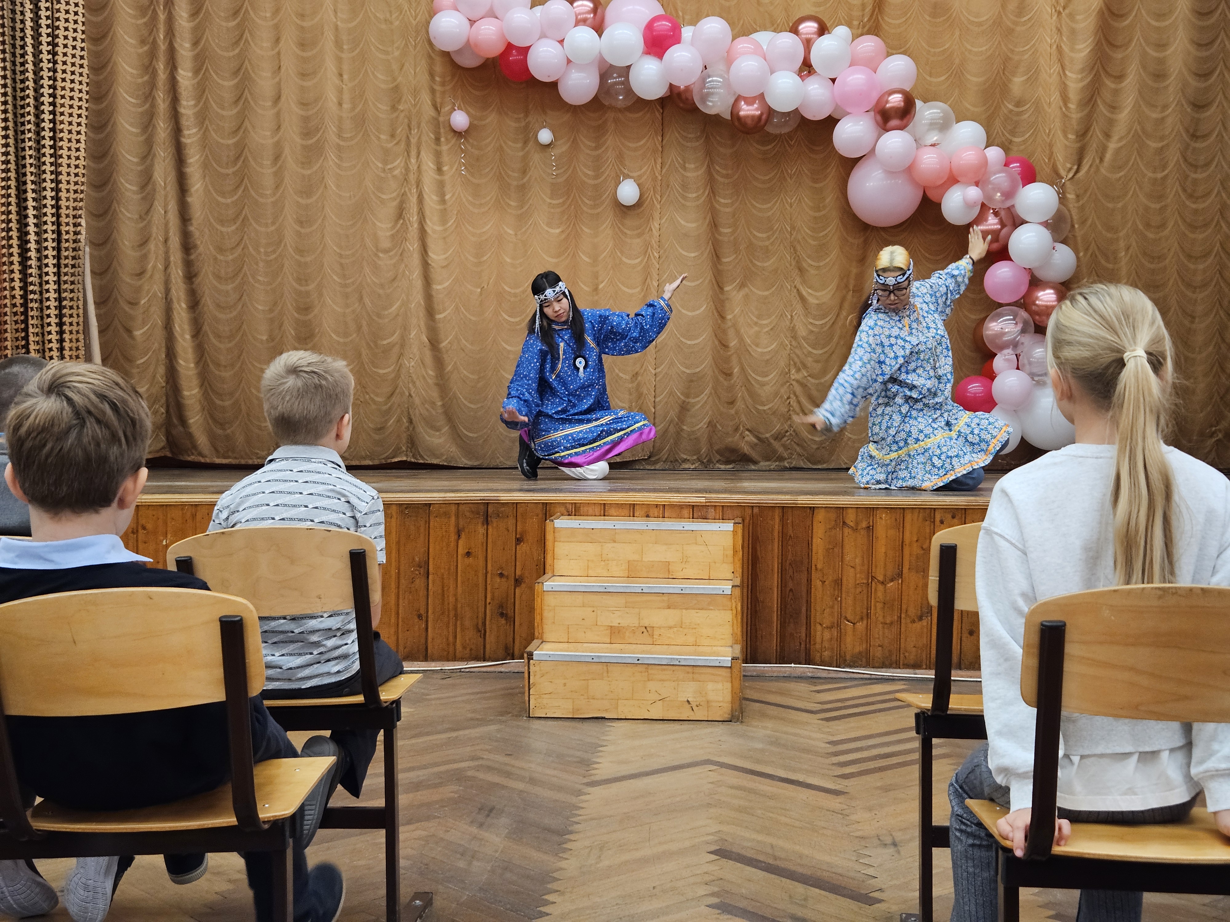 В рамках мероприятия ученики 3-х классов познакомились с традициями и культурой Чукотки, прослушали увлекательную лекцию об особенностях жизни и быта чукчей, а также приняли участие в мастер-классе по чукотским народным танцам.