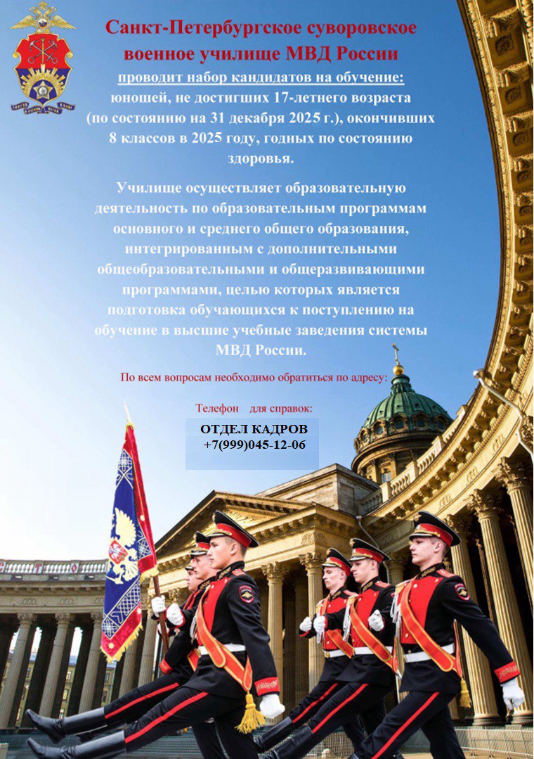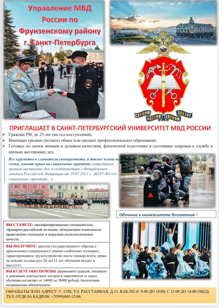 УМВД России по Фрунзенскому району г.Санкт-Петербурга приглашает на обучение в Санкт-Петербургский университет МВД России и Санкт-Петербургское суворовское военное училище МВД России!!!