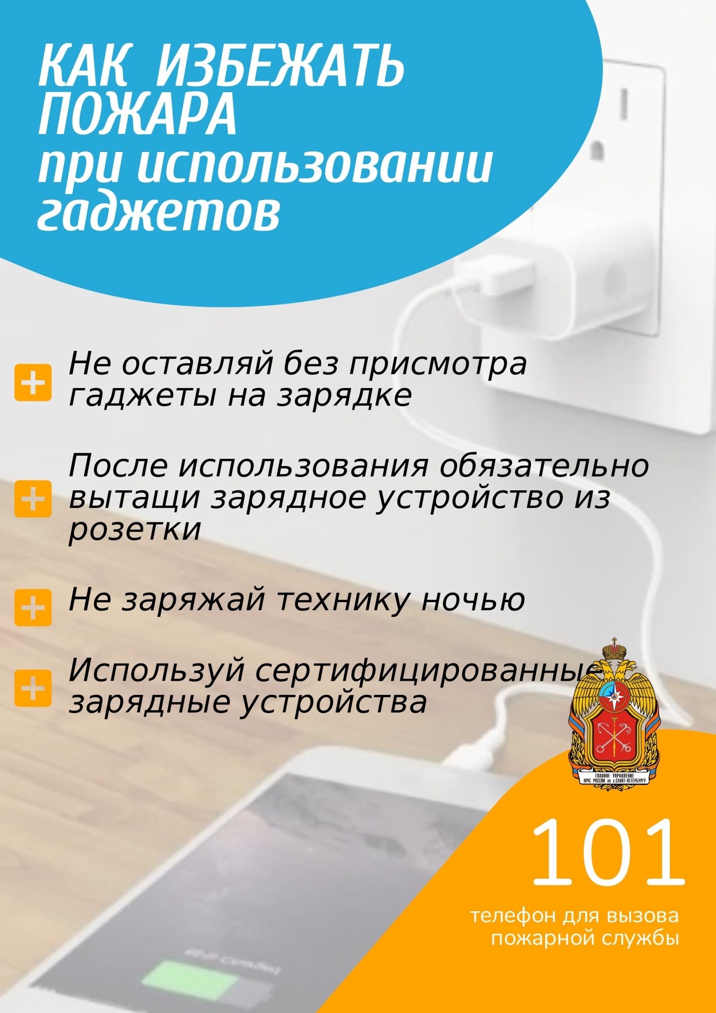 - необходимо использовать оригинальные зарядные устройства, которые соответствуют стандартам безопасности и прошли все необходимые испытания: одна из основных причин возникновения пожара от гаджетов - некачественное зарядное устройство.