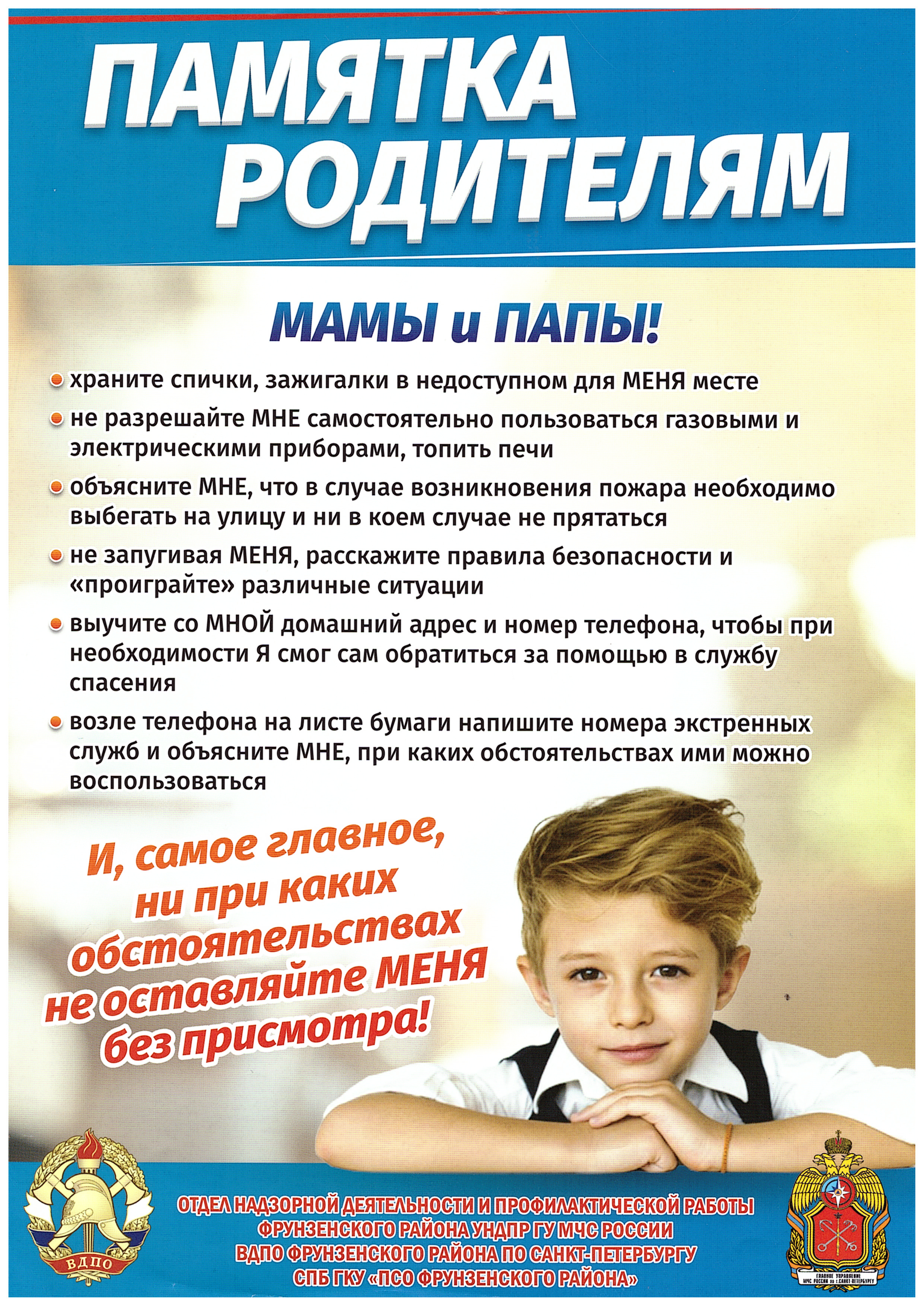 Управление по Фрунзенскому району ГУ МЧС России по г.Санкт-Петербургу напоминает: безопасность детей - ответственность взрослых!