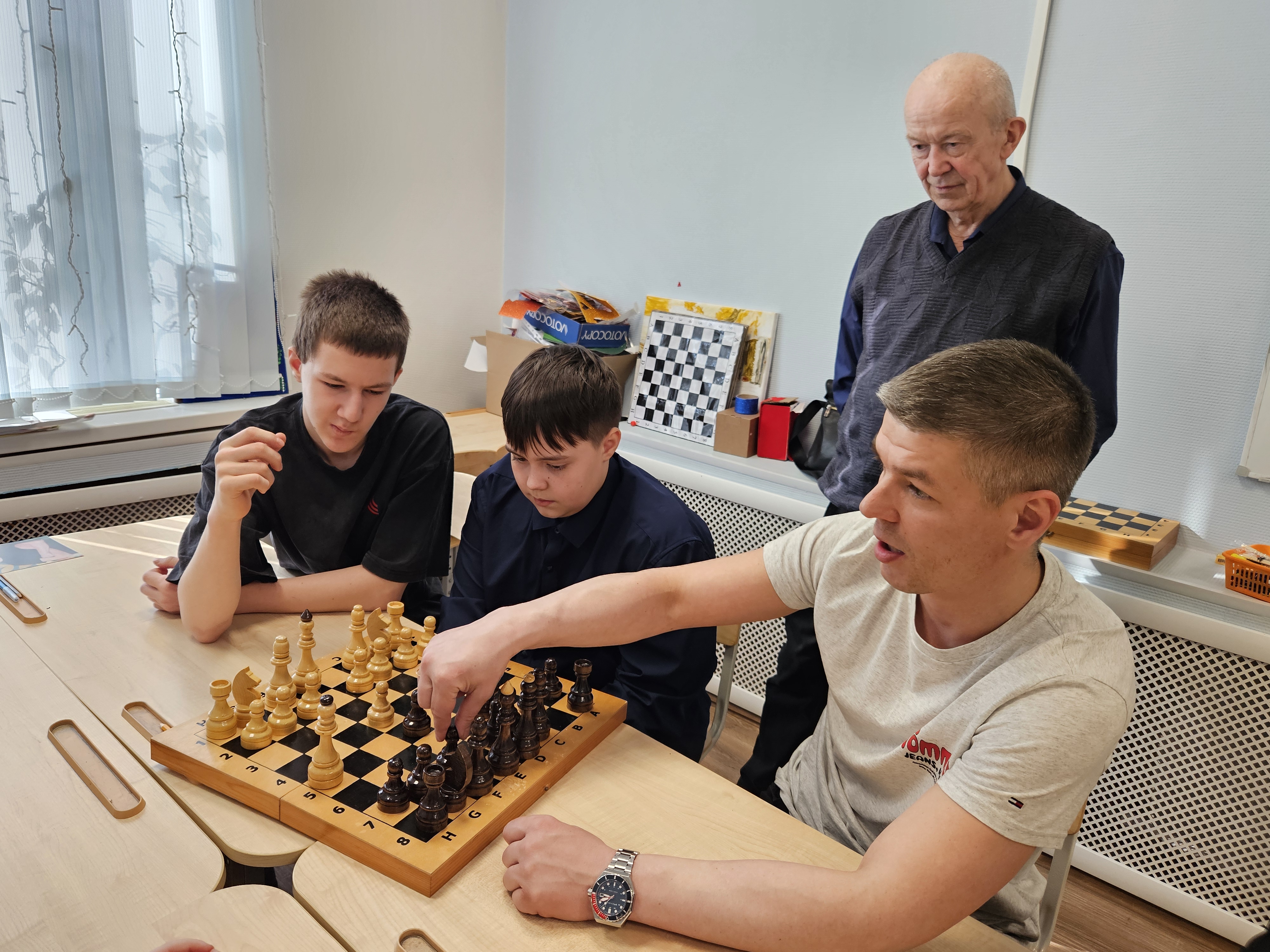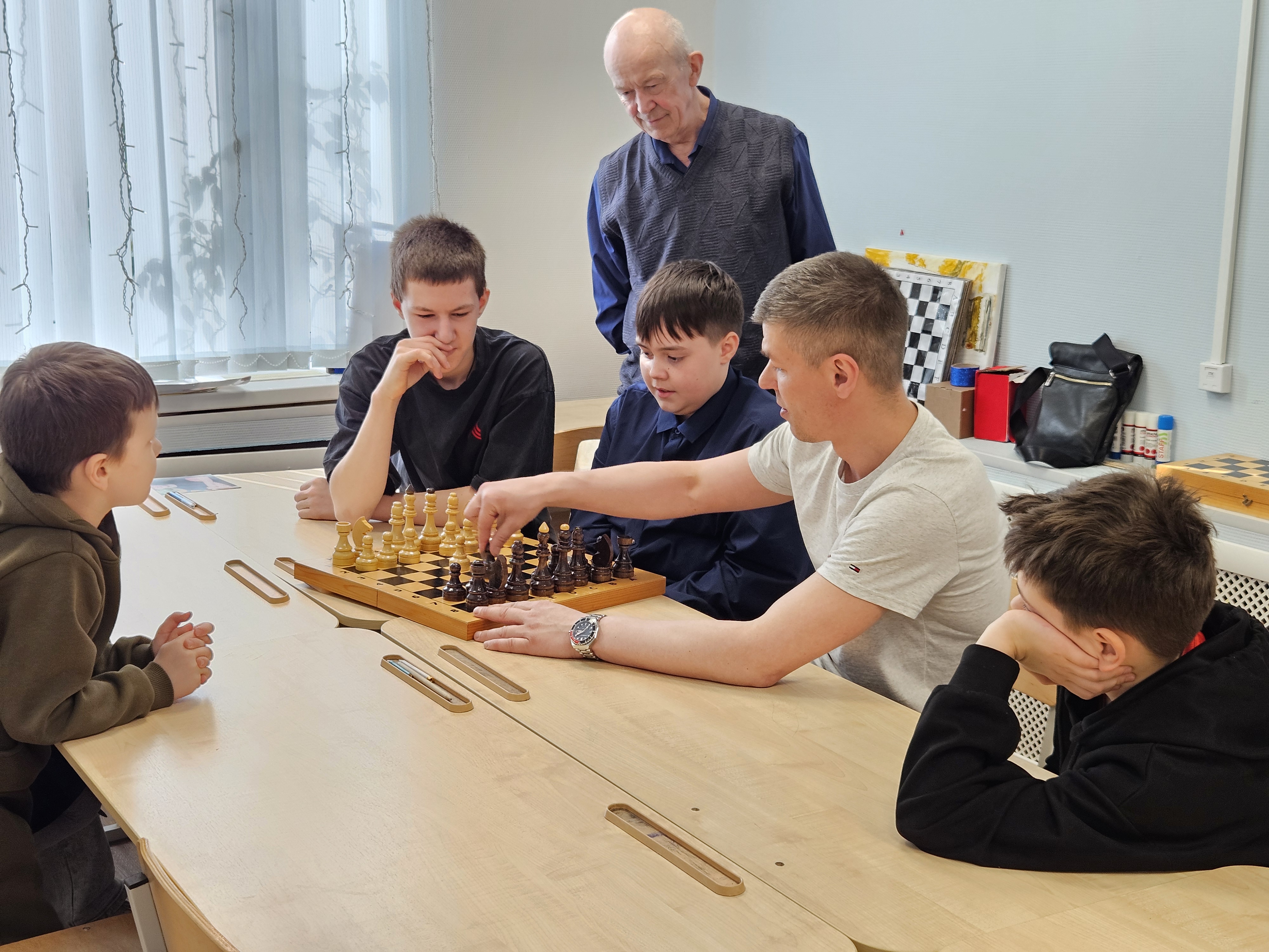 Занятия проходят в дружественной обстановке, ведь спортивная игра в шахматы - замечательный повод для общения.