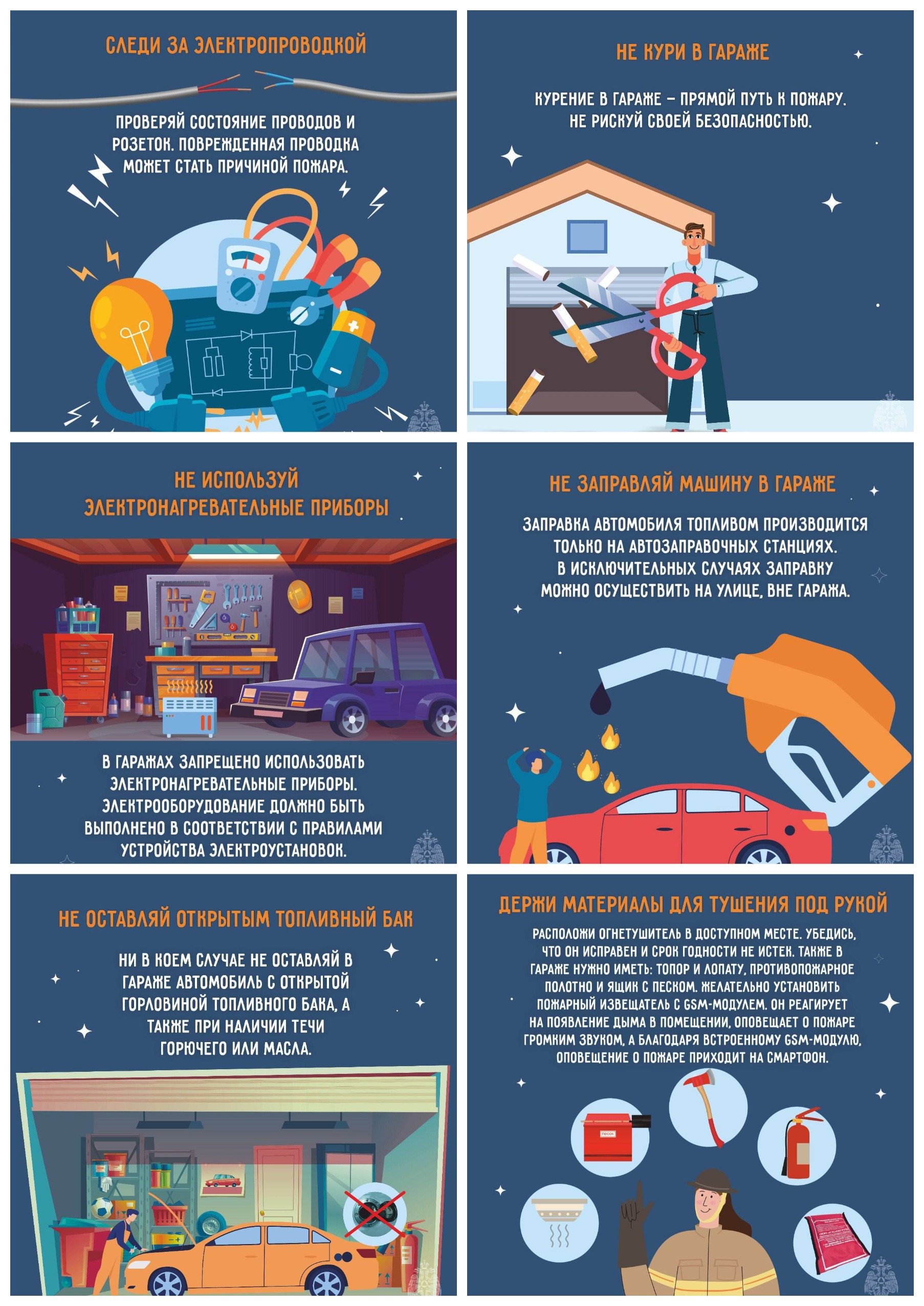 Уделите внимание прилегающей к гаражу территории– уберите мусор, сухую траву, посыпьте песком пролитые легковоспламеняющие жидкости;