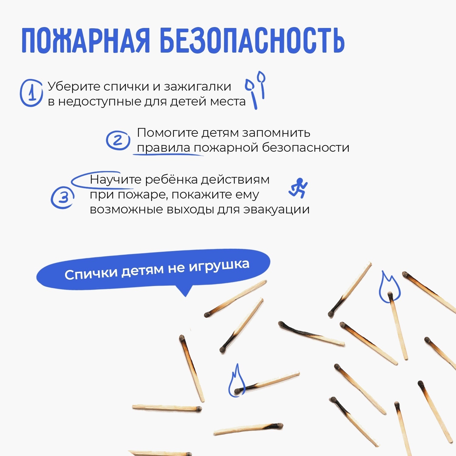 Чтобы избежать трагедии, взрослым важно научить детей правилам пожарной безопасности в быту, объяснить, что игры с огнем опасны. Также вместе с ними надо выучить, как действовать в случае возникновения пожара.