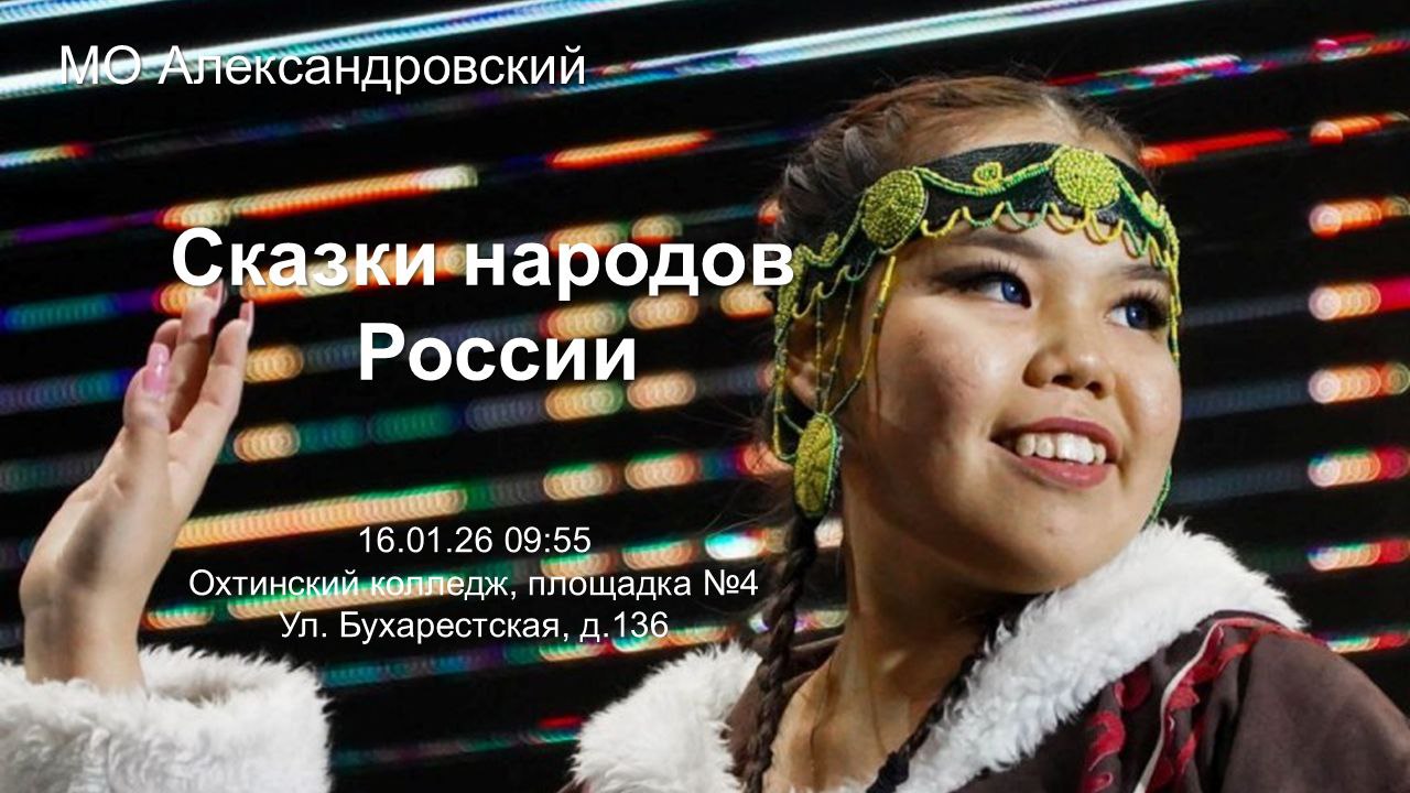 16 января на площадке №4 "Охтинский колледж" состоится встреча на тему «Сказки народов России»