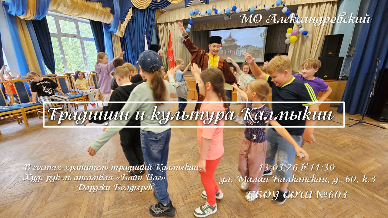 Хранитель калмыцких традиций, художественный руководитель калмыцкого ансамбля «Байн Цаг» Дорджи Болдырев, совместно с сотрудниками МБУ Александровский посетят школу №603.