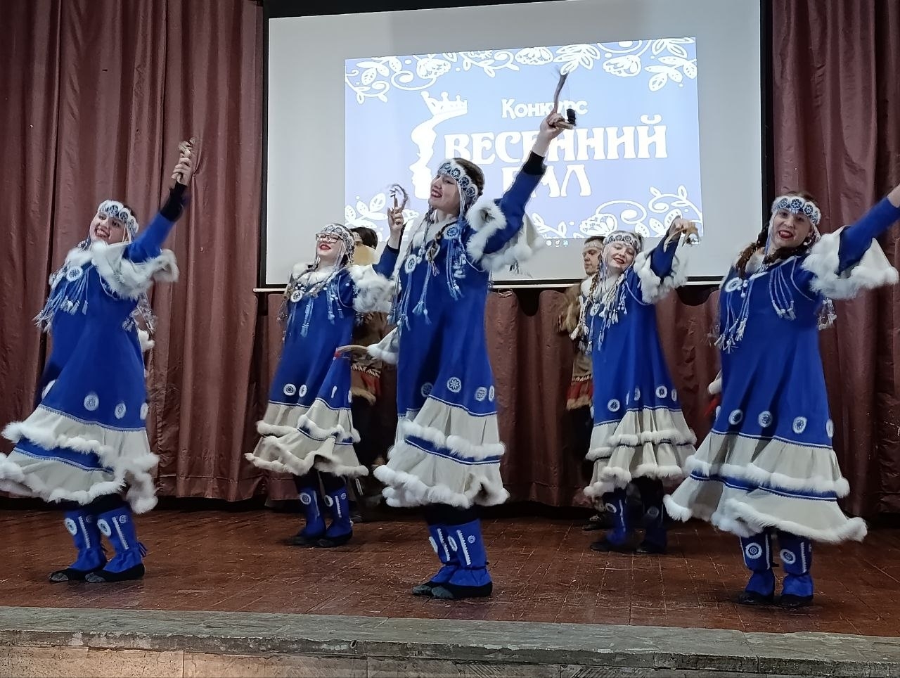 Под захватывающие ритмы бубна и звон колокольчиков зрители перенеслись в заснеженную тундру и ощутили на себе морозное дыхание Камчатки. Выступление ансамбля «Ейгунычвын» открыло конкурс талантов, интеллекта и грации «Весенний бал» Охтинского колледжа.