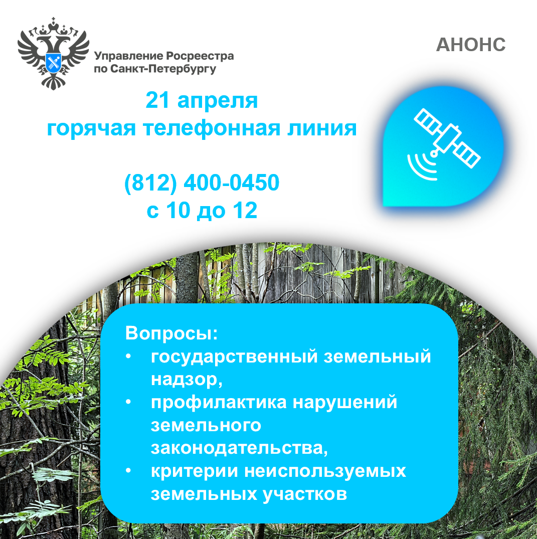 Управление Росреестра по Санкт-Петербургу проводит горячую телефонную линию по вопросам: