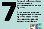 - не покидай границы территории лагеря. Детям запрещается самостоятельно уходить за обозначенные зоны без присмотра взрослых;