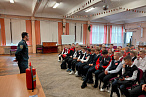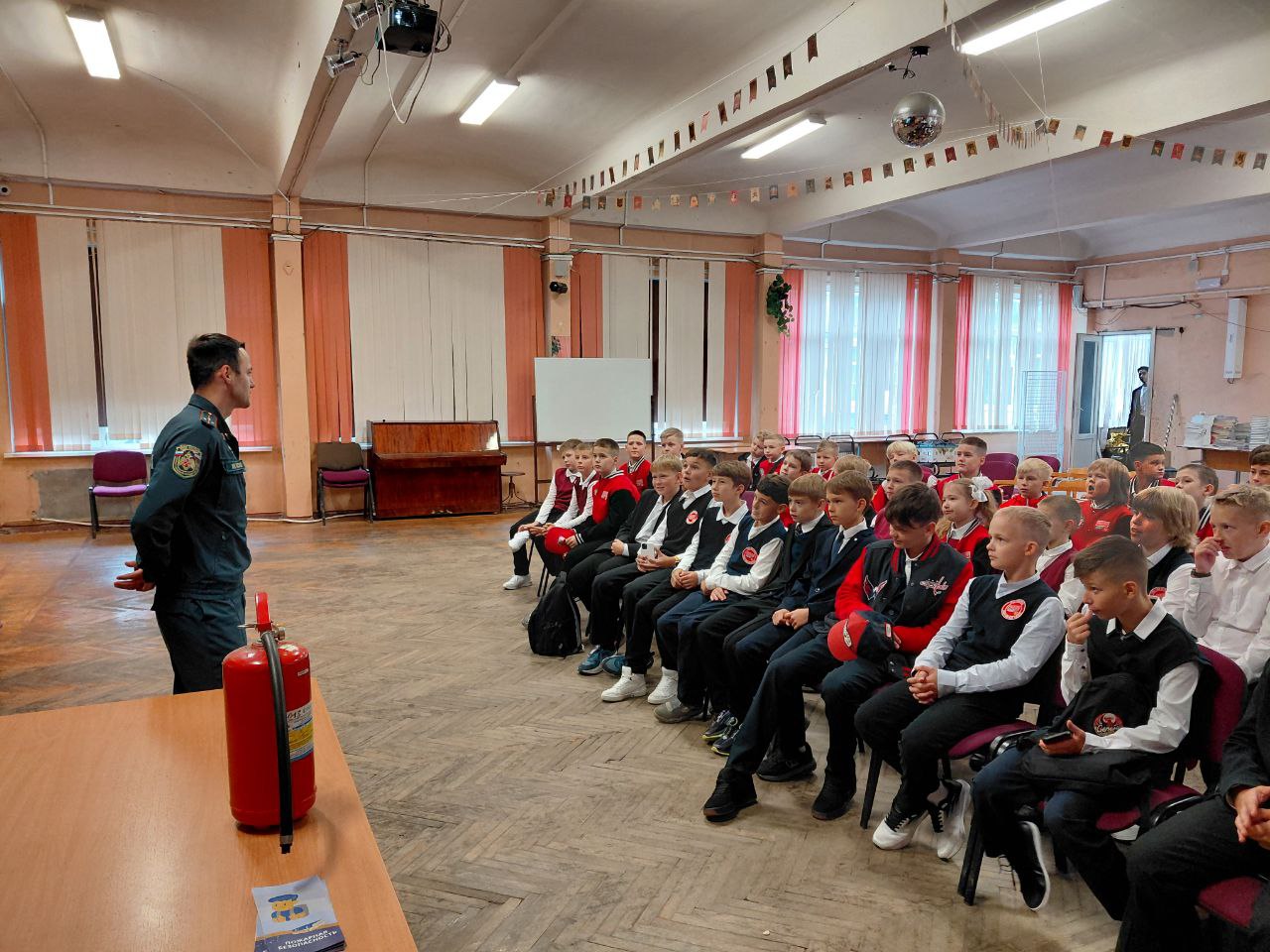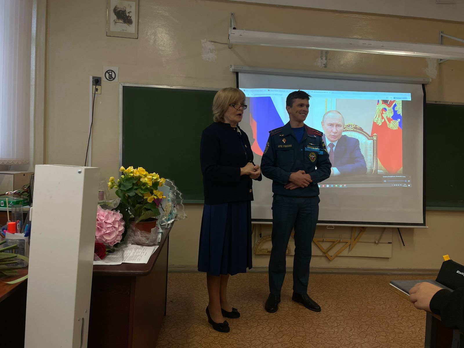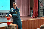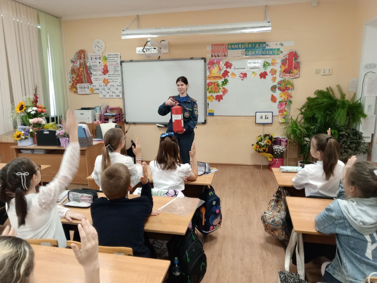 После торжественной части представители МЧС России провели уроки безопасности. Главная цель занятий – повышение уровня обеспечения безопасности детей, восстановление у ребят после школьных каникул навыков безопасного поведения. В ходе уроков специалисты рассказали школьникам о правилах безопасного поведения, ознакомили с первичными средствами пожаротушения, напомнили номера вызова экстренных служб.