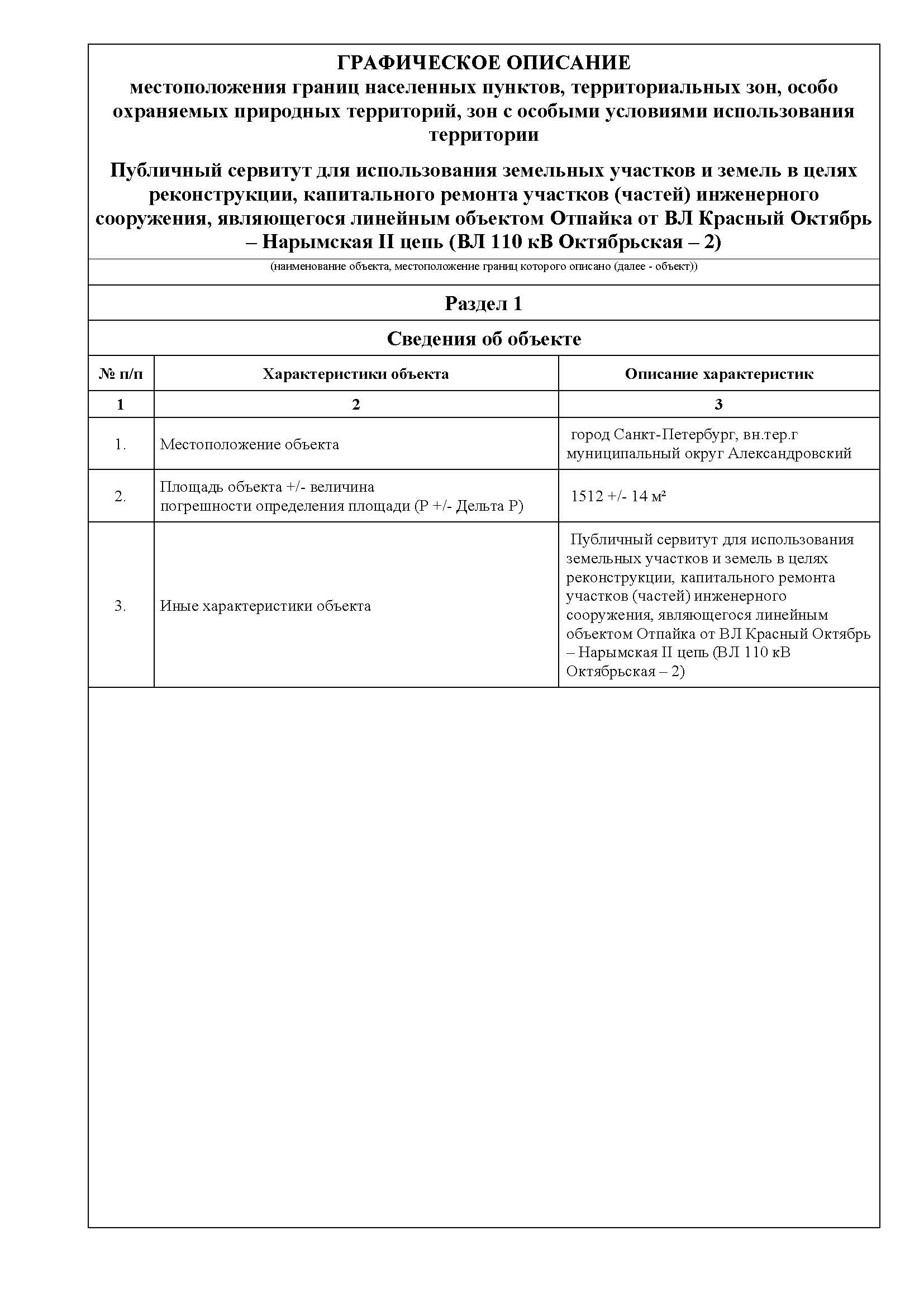 Ходатайство 04-26-23239/25-0-0 подано Публичным акционерным обществом «Россети Ленэнерго» (ИНН 7803002209, ОГРН 1027809170300) реконструкции участков (частей) инженерного сооружения, являющегося линейным объектом.: Линейное сооружение – ВЛ 110 кВ Октябрьская - 1/2, учтенного по адресу: г.Санкт-Петербург, электросеть 110 кВ Невского и Фрунзенского районов, литера А, кадастровый номер 78:00:0000000:1363, согласно записи в Едином государственном реестре прав