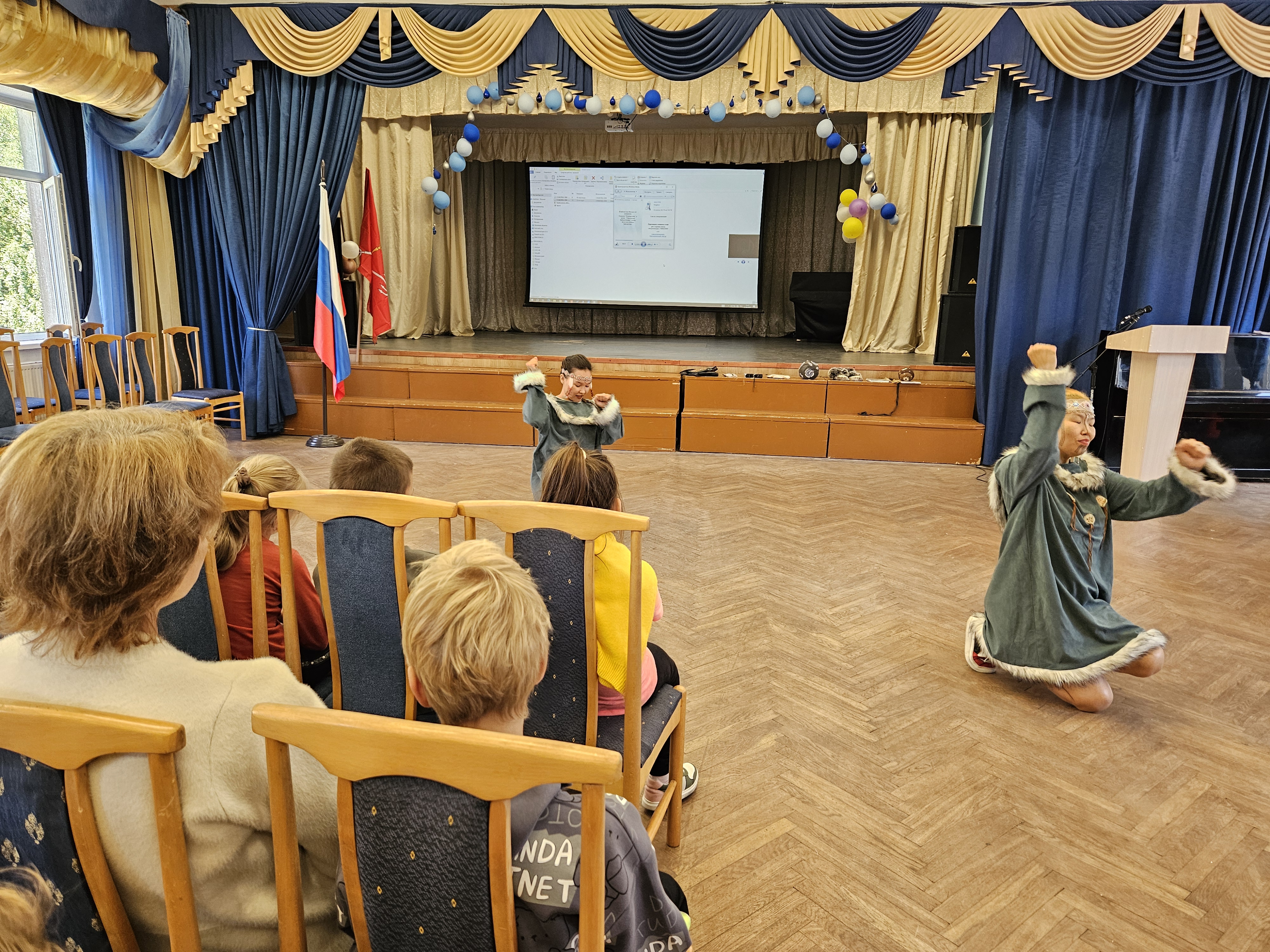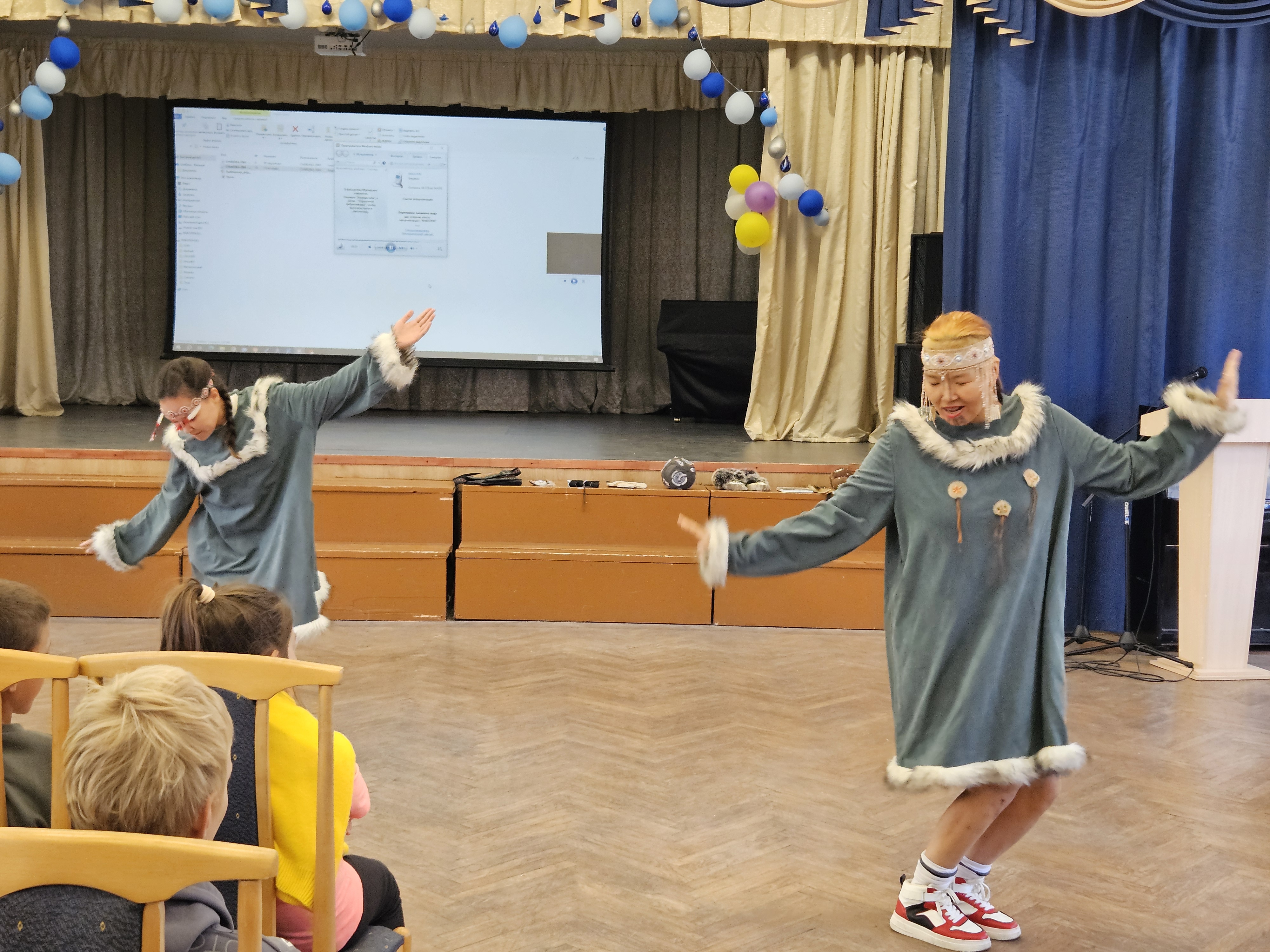 В рамках мероприятия ученики школы познакомились с традициями и культурой Чукотки, прослушали увлекательную лекцию об особенностях жизни и быта чукчей и других северных народов, а также приняли участие в мастер-классе по чукотским народным танцам.