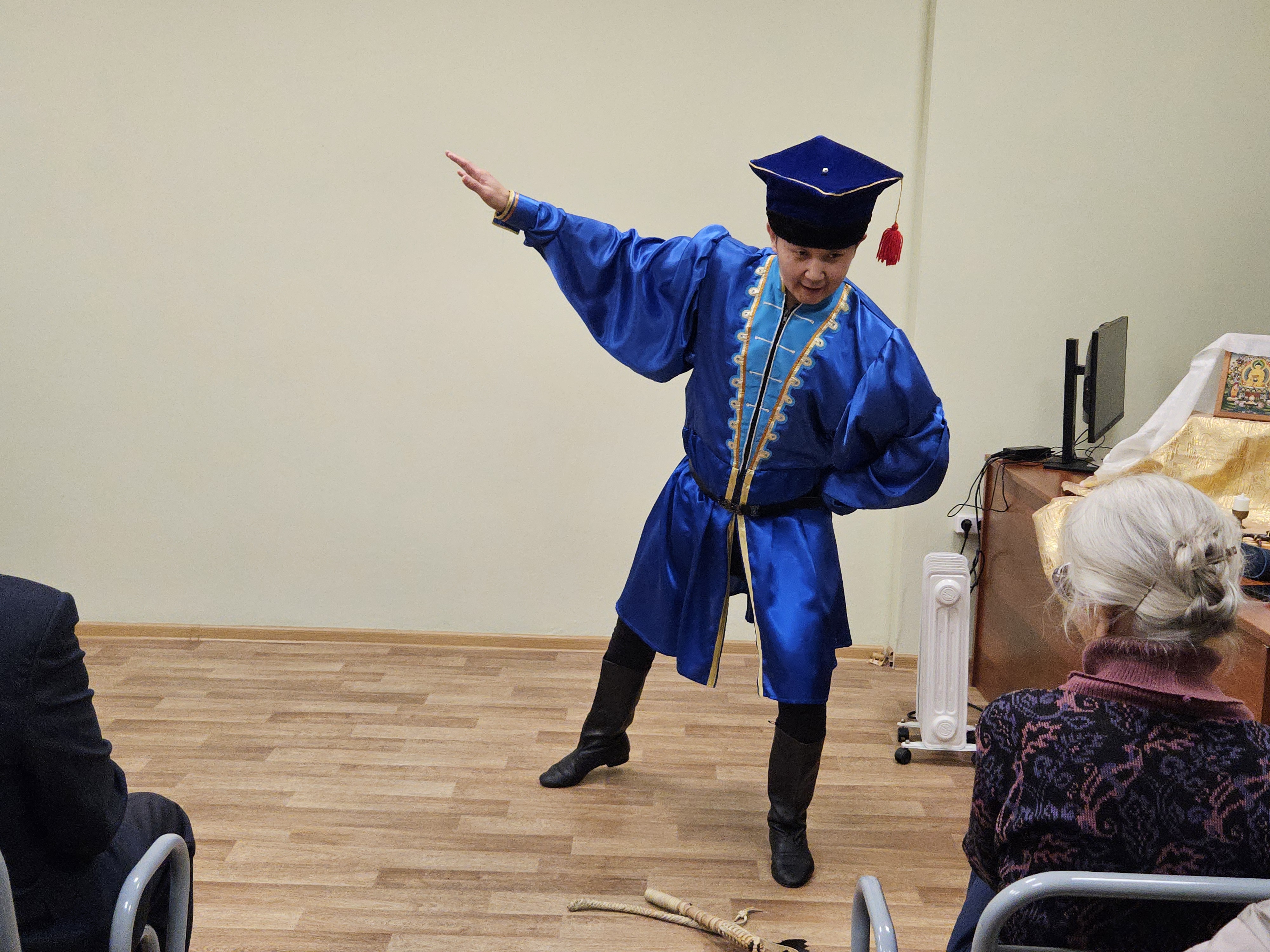Представитель калмыцких традиций, художественный руководитель танцевального ансамбля «Байн Цаг» Дорджи Болдырев, посетил местную Администрацию МО Александровский, где показал и рассказал об особенностях традиционной культуры своего родного края.