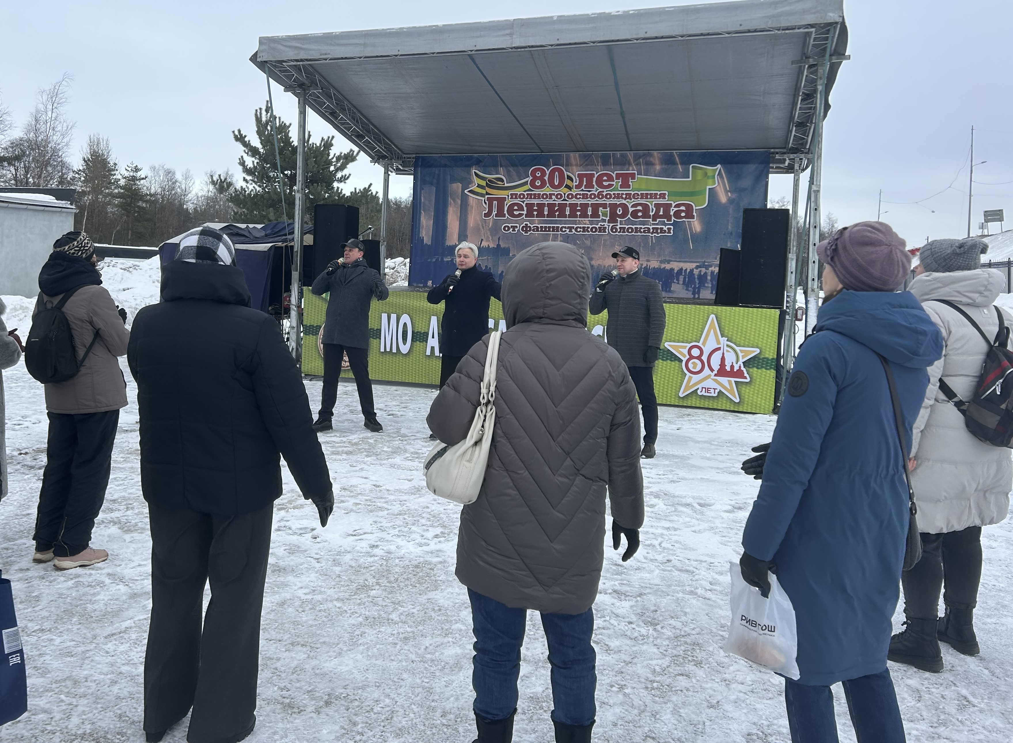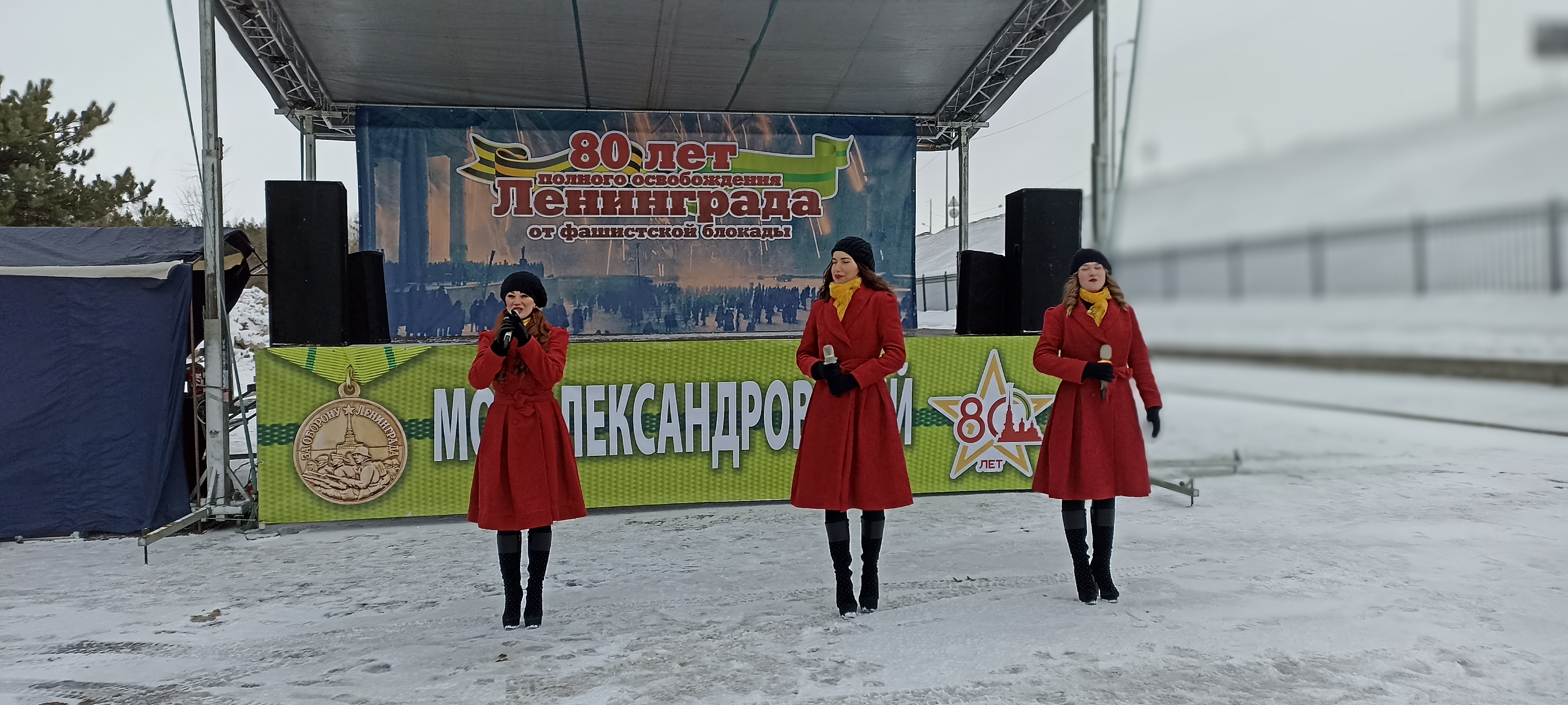 2 февраля на территории музея – заповедника «Прорыв блокады Ленинграда» для жителей муниципального округа Александровский состоялся праздничный концерт, в котором приняли участие артисты Ленинградской эстрады - лауреаты Международных конкурсов Алексей Мягков и Сергей Зыков, группы «Кураж FM» и «Братья славяне». В концерте прозвучали песни военных лет, многие из них артисты исполняли вместе со зрителями: «Ладога», «Медаль за оборону Ленинграда», «Ленинградцы» и другие.