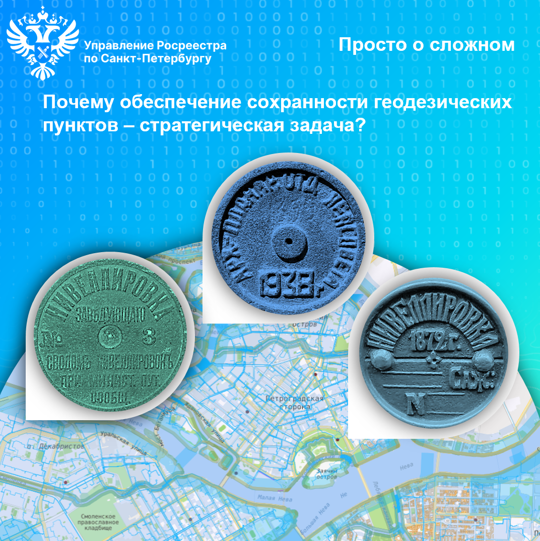 Одним из приоритетных направлений деятельности Росреестра является поддержание в надлежащем состоянии пунктов государственной геодезической сети, государственной нивелирной сети и государственной гравиметрической сети. Ежегодно, в целях мониторинга и наполнения Федерального фонда пространственных данных актуальными сведениями о состоянии геодезических пунктов государственных сетей, Управлением Росреестра по Санкт-Петербургу проводится обследование и координирование центров геодезических пунктов, принимаются решения об установлении им охранных зон.