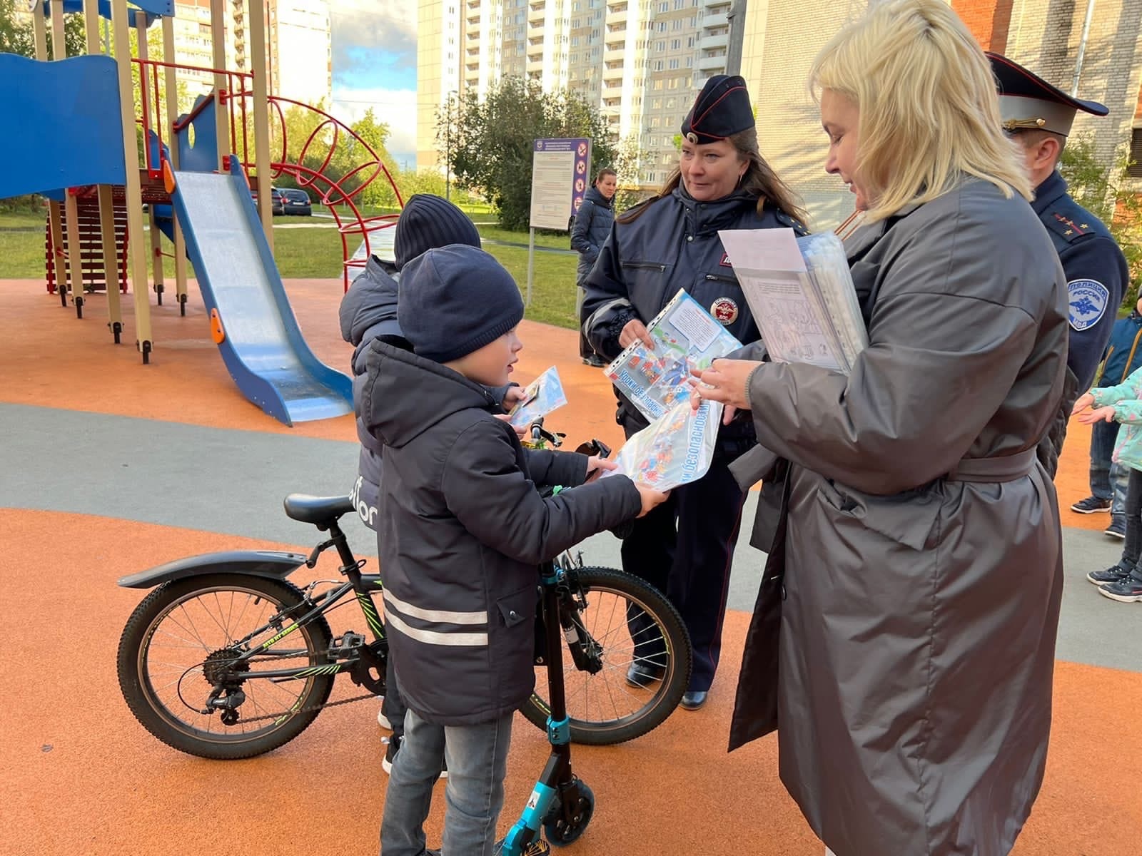 07.09.2022 года на территории муниципального округа Александровский по адресу: Санкт-Петербург, ул. Олеко Дундича, д. 36, корп. 2, специалисты Местной Администрации внутригородского муниципального образования города федерального значения Санкт-Петербурга муниципальный округ Александровский совместно с сотрудниками отдела по пропаганде ОГИБДД УМВД России по Фрунзенскому району г. Санкт-Петербурга провели информационно- пропагандистское мероприятие среди детей и их родителей «Детская площадка». С несовершеннолетними пешеходами и их родителями были проведены беседы о соблюдении Правил дорожного движения при переходе проезжей части. Родителям были вручены памятки по Правилам дорожного движения, а также памятки для детей пешеходов. Совсем юным пешеходам были вручены световозвращающие брелоки и книги-раскраски «Уроки безопасности».