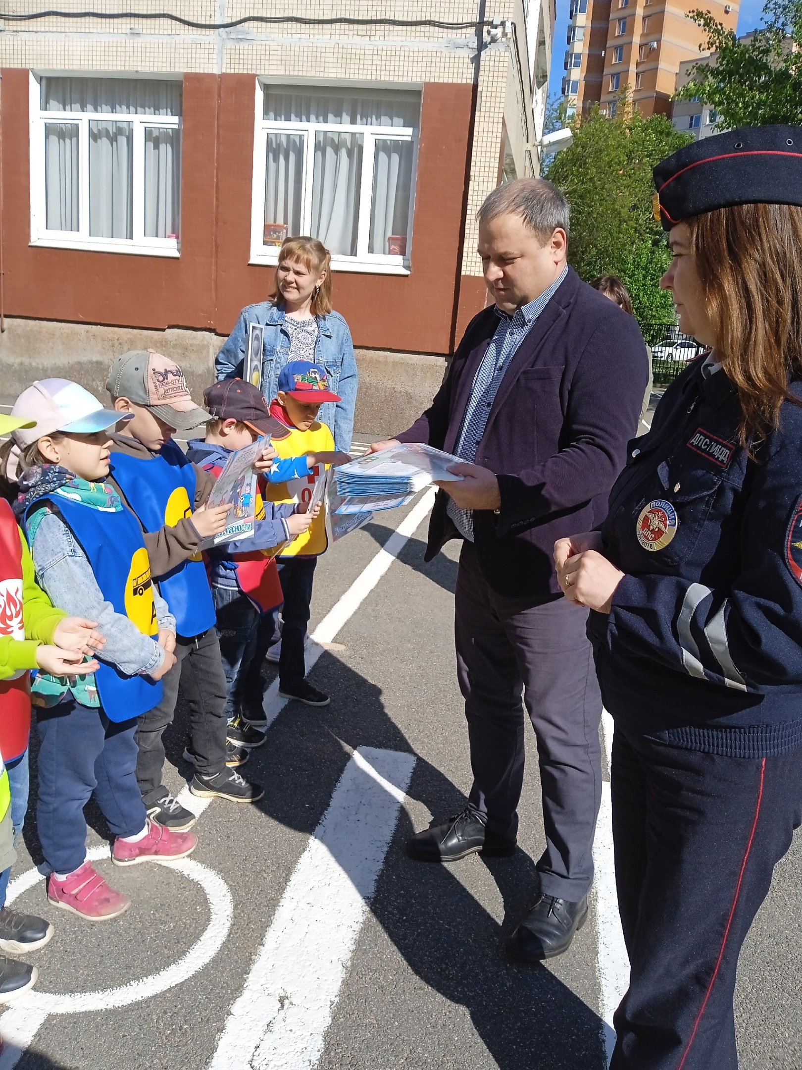 В завершении мероприятия перед ребятами выступил глава Местной Администрации внутригородского муниципального образования г. СПб МО «Александровский» Трофим Викторович Новик и вручил юным пешеходам раскраски тематической направленности.