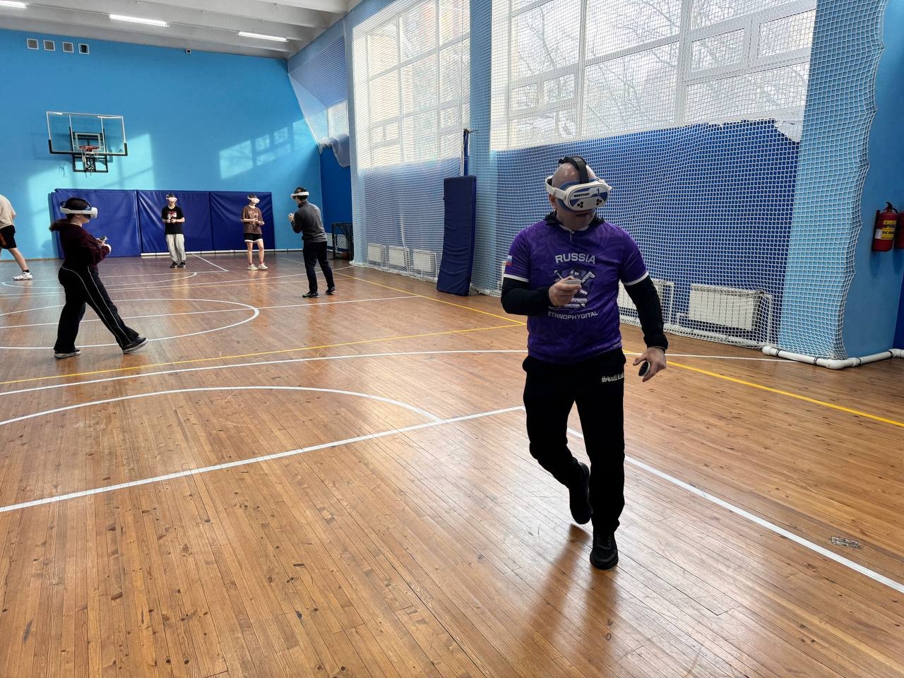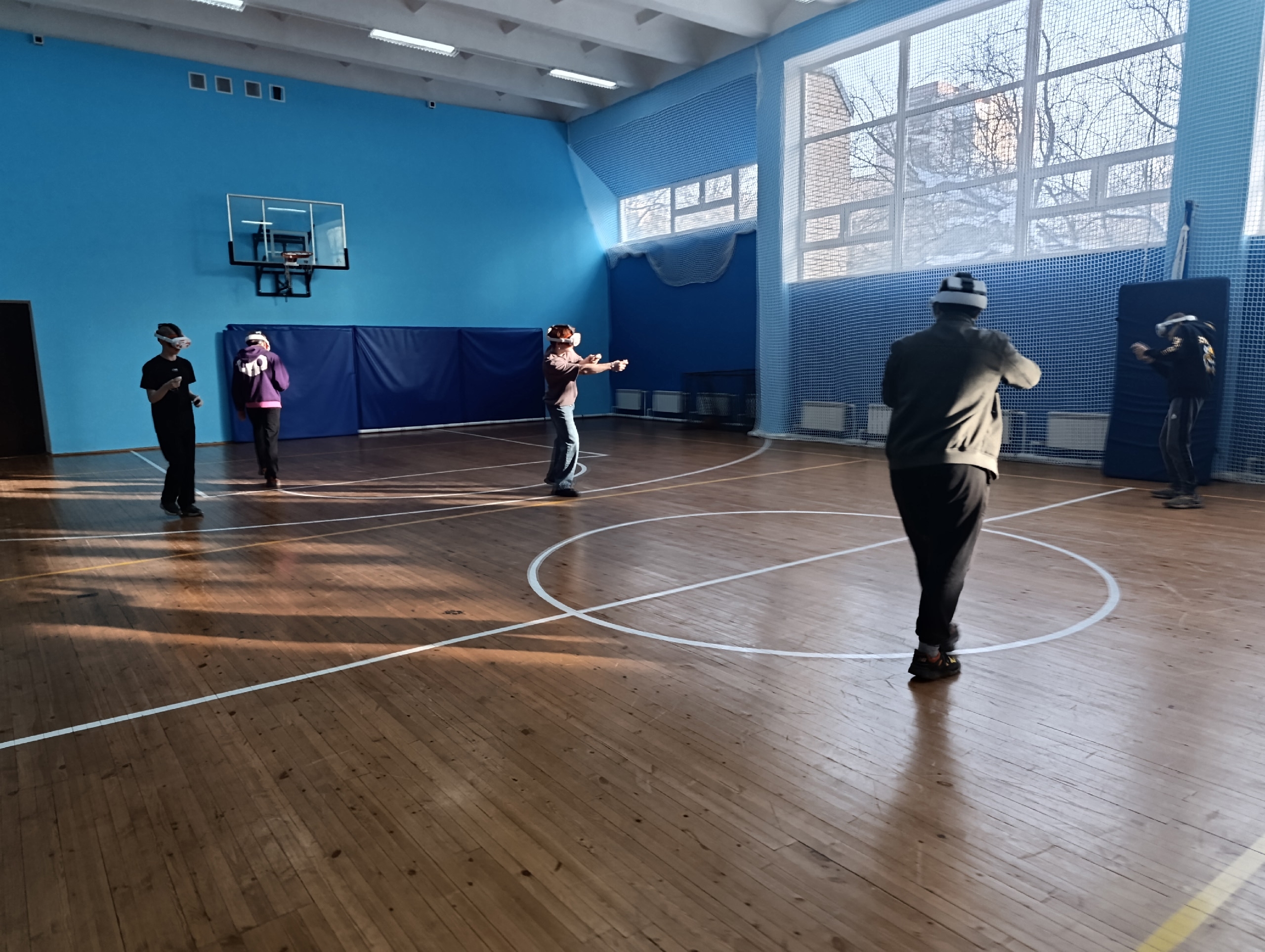 В спортивном зале площадки №4 Охтинского колледжа прошло занятие по VR-тактике, направленное на развитие командного взаимодействия, координации движений, скорости и точности попаданий.